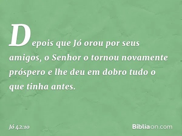 E o senhor acrescentou, em dobro, a tudo quanto jó antes possuía" ( jó 42.10 )... 1 e jó respondeu ao senhor, dizendo: Coisas maravilhosas demais para mim, coisas que eu não conhecia.